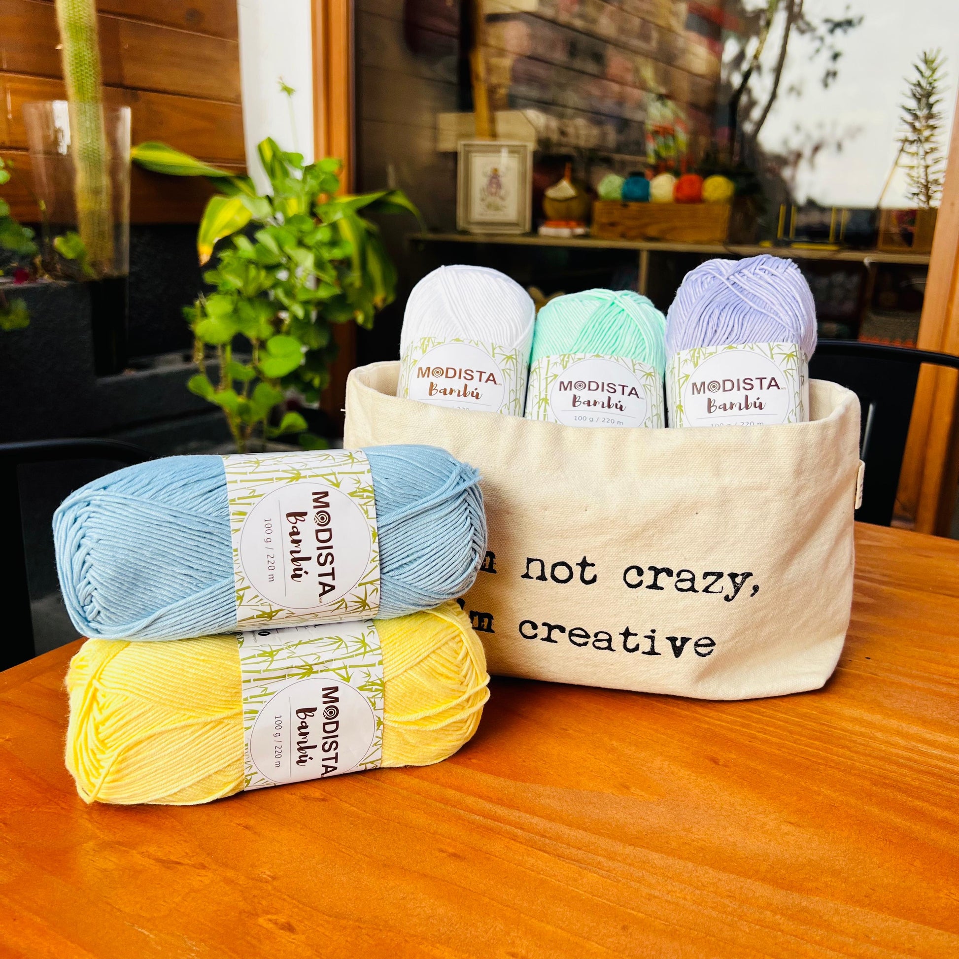 Bambú de Modista es un hilado liviano y sedoso, ideal para tejedoras que buscan resultados parejos, fluidos y con un acabado luminoso. Su mezcla equilibrada de 50% bambú y 50% algodón permite que el tejido respire, se vea elegante y sea agradable al contacto con la piel, incluso en proyectos para bebés.