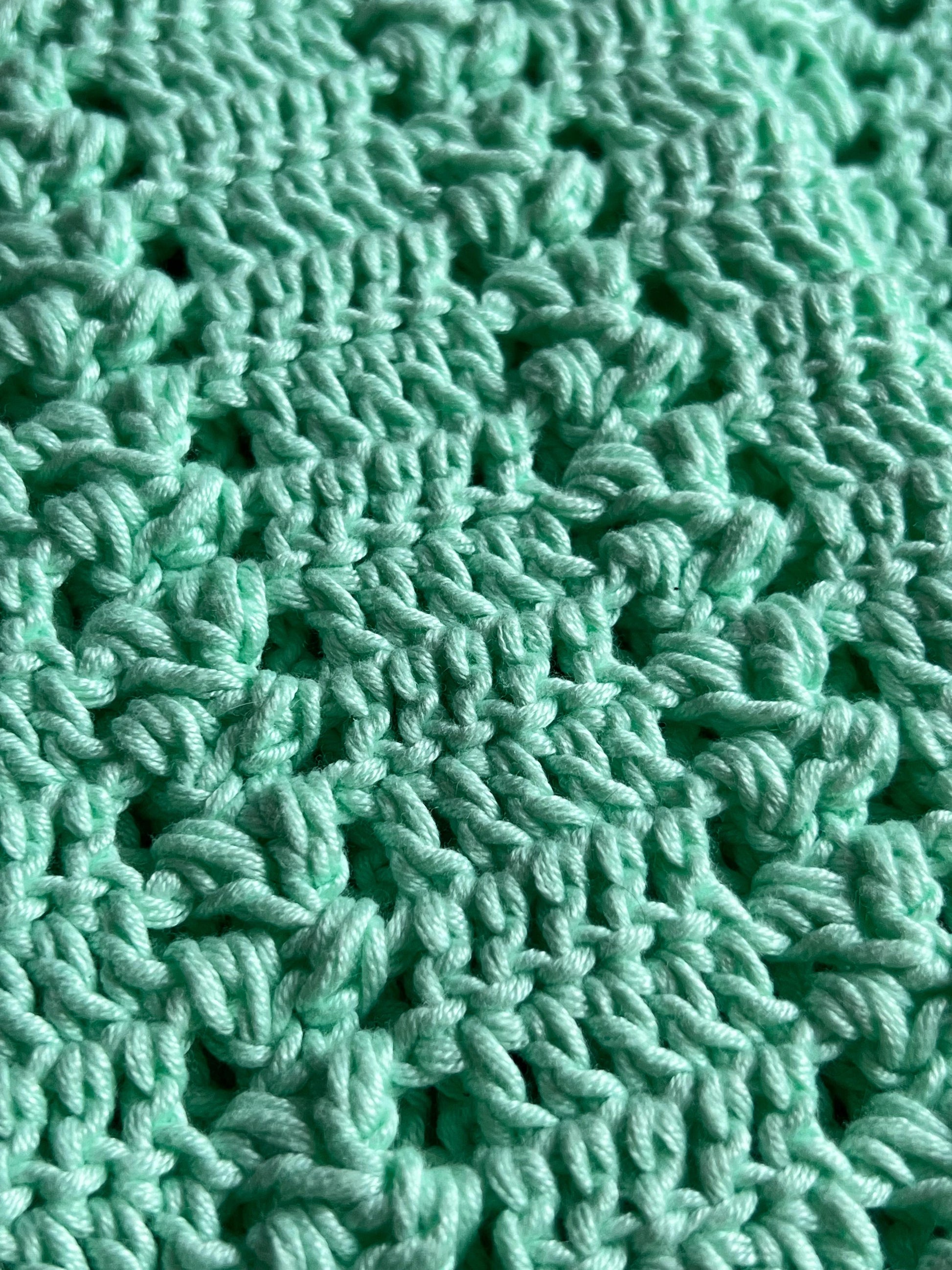 El tejido combina puntos altos, cadenetas y puff en una secuencia que engancha y relaja al mismo tiempo.